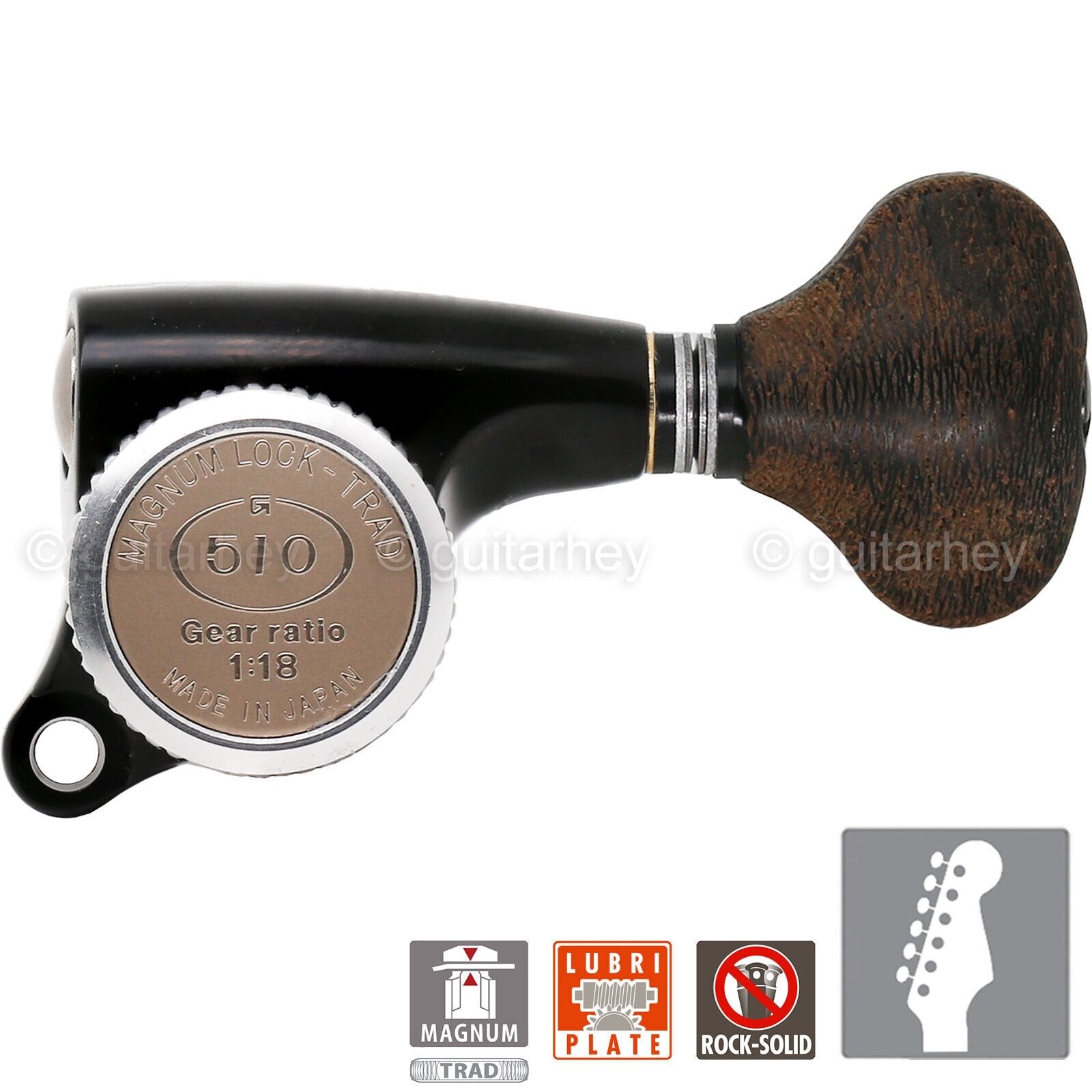 NEW Gotoh SGS510Z-ZS5 MGT 6 in line LOCKING Tuners Set w/ WOOD Buttons - BLACK