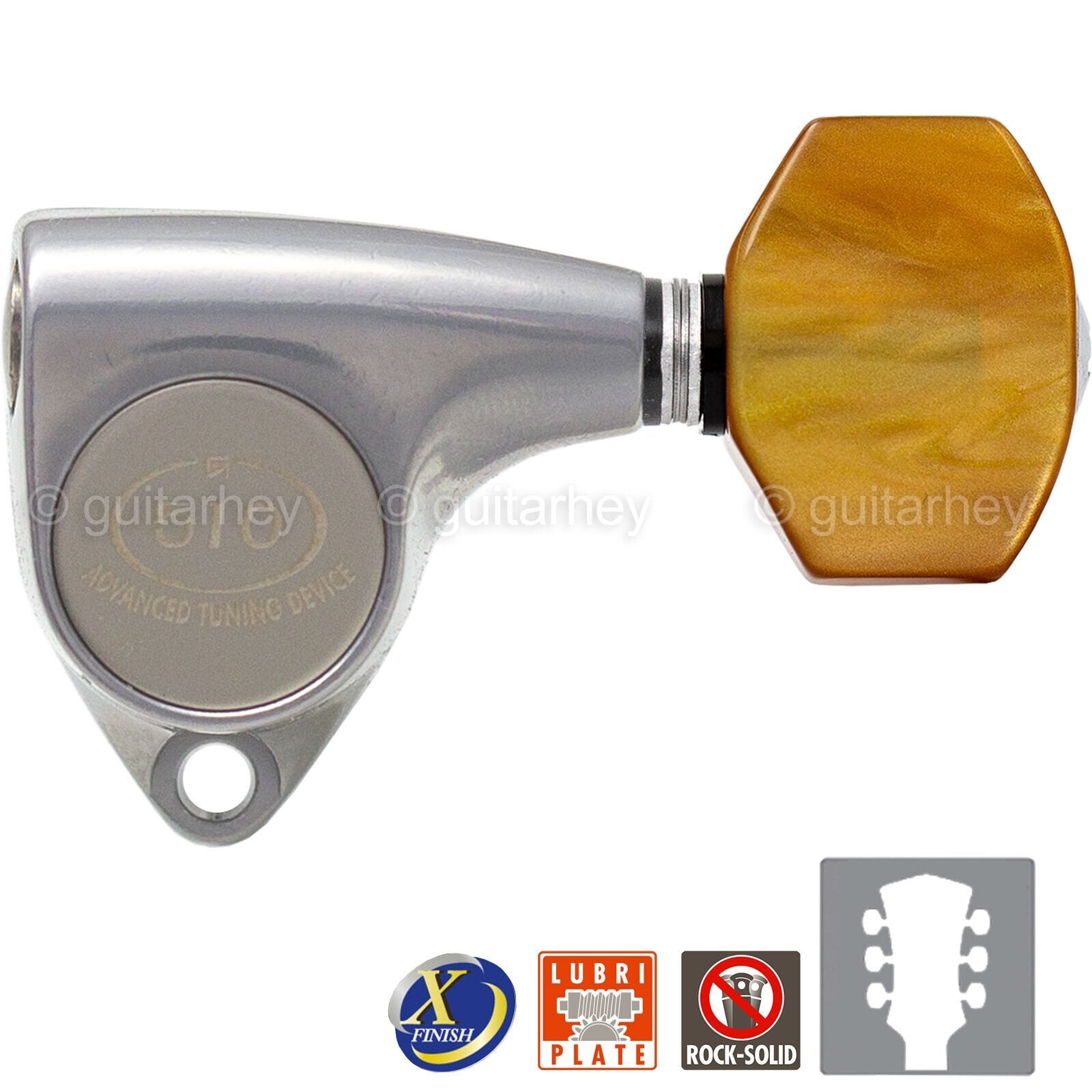 NEW Gotoh SGV510-P8 Tuners L3+R3 Keys 1:18 Ratio, AMBER 3x3 - X-FINISH CHROME