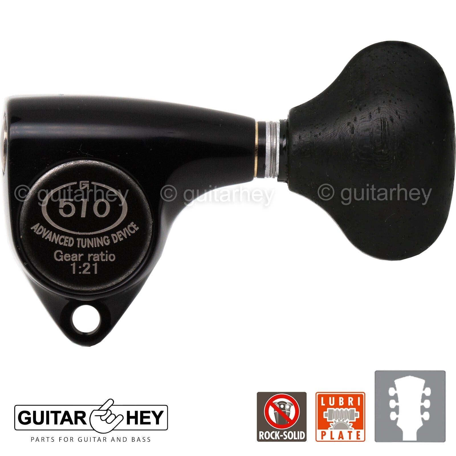 Gotoh 510 top of the line super tuning machine heads feature the accuracy and reliability Gotoh is famous for. They features a 21:1 gear ratio for precise, accurate tuning in a small footprint, and a die-cast enclosure that is permanently sealed and lubricated for years of smooth operation.