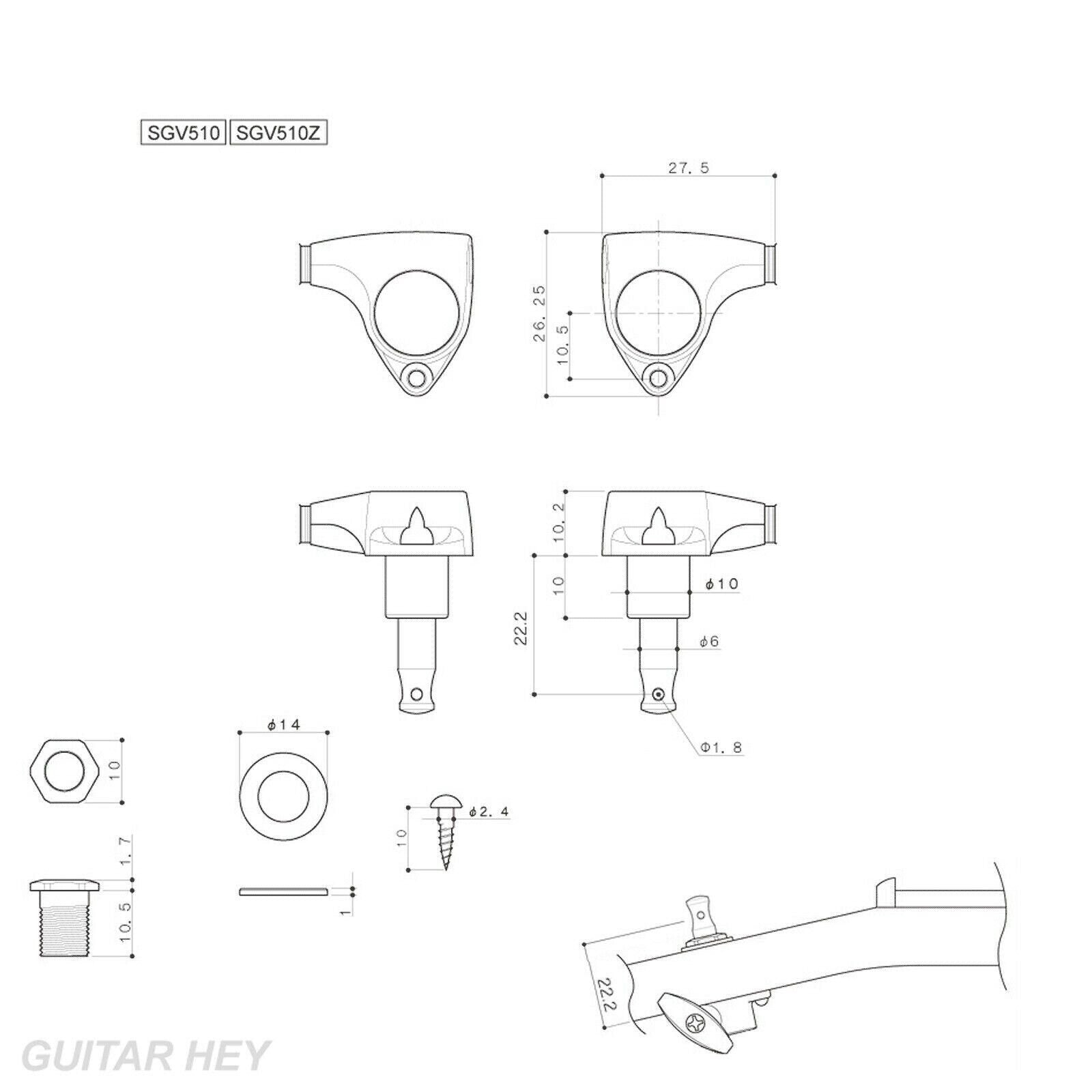 NEW Gotoh SGV510Z-M07 Tuners L3+R3 Set Advanced Tuning 21:1 Gear Ratio 3x3, GOLD