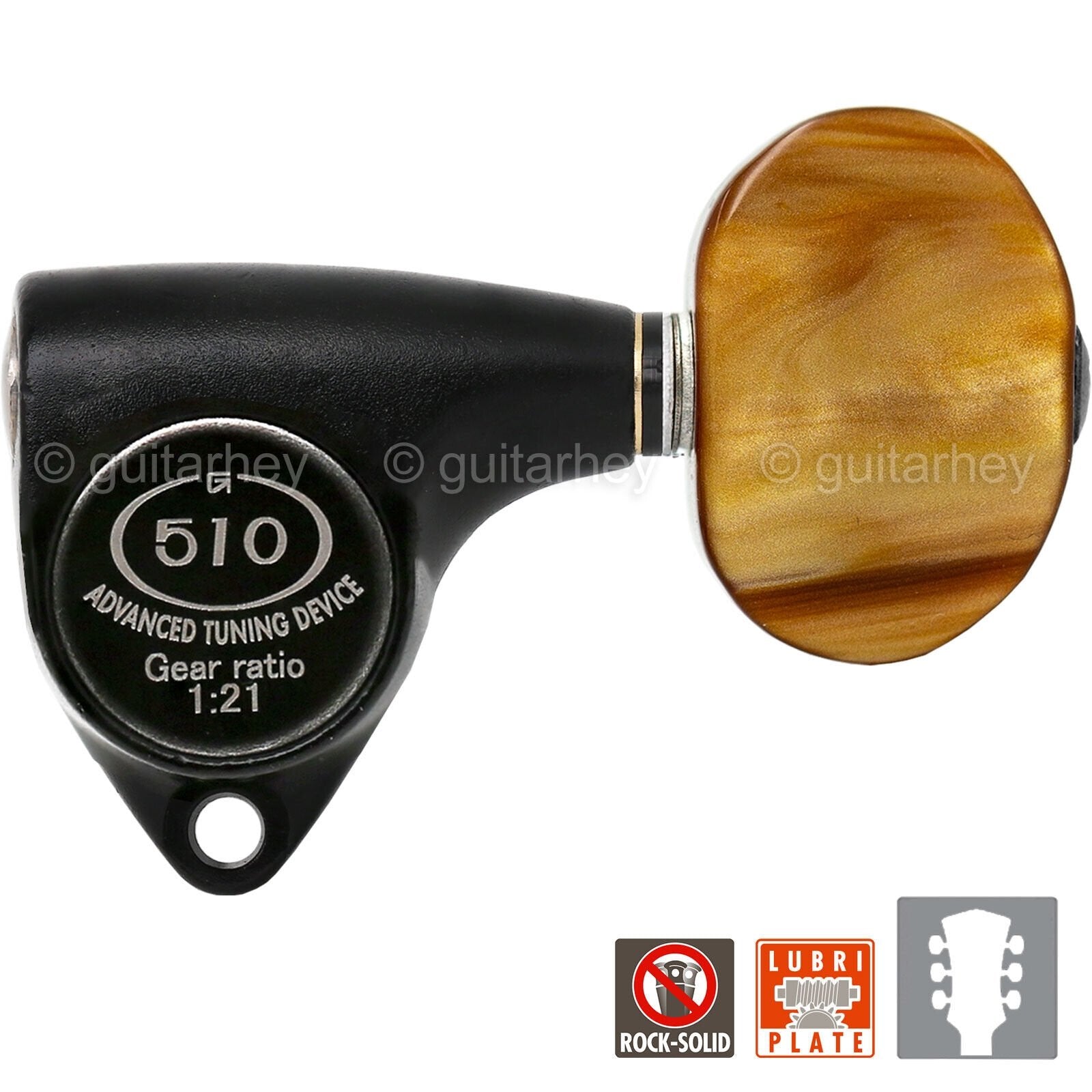 - LUBRI-PLATE With a “Solid Lubrication Coat”, oil has been eliminated keeping the lubrication where it is needed for the life of the tuning machine heads.
