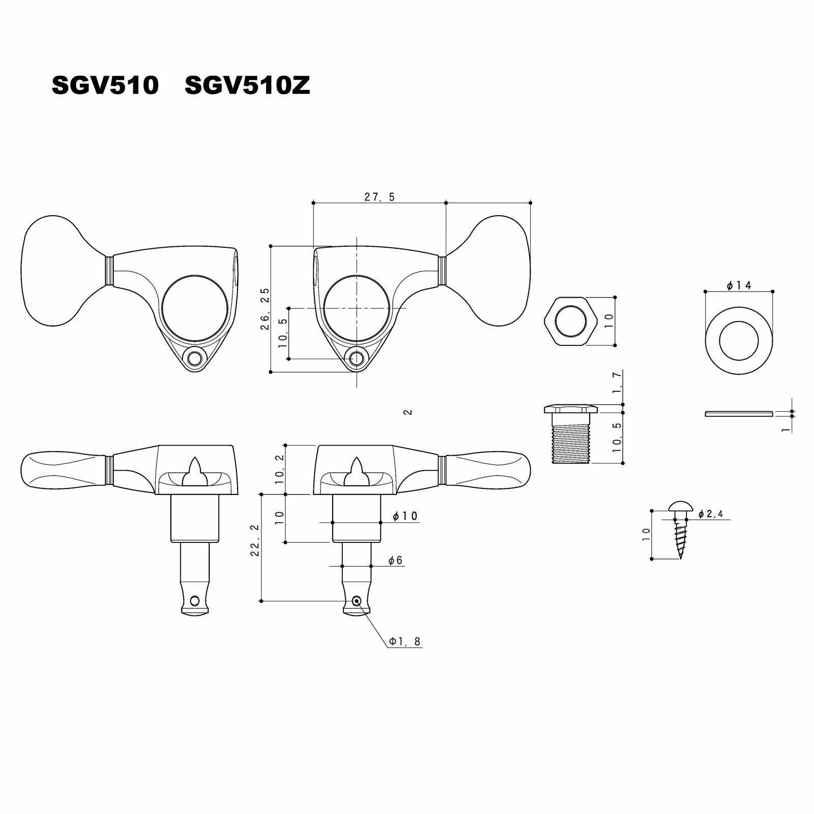 NEW Gotoh SGV510Z-P7 Tuners L3+R3 Guitar Tuning Keys 1:21 Ratio, 3x3 - BLACK