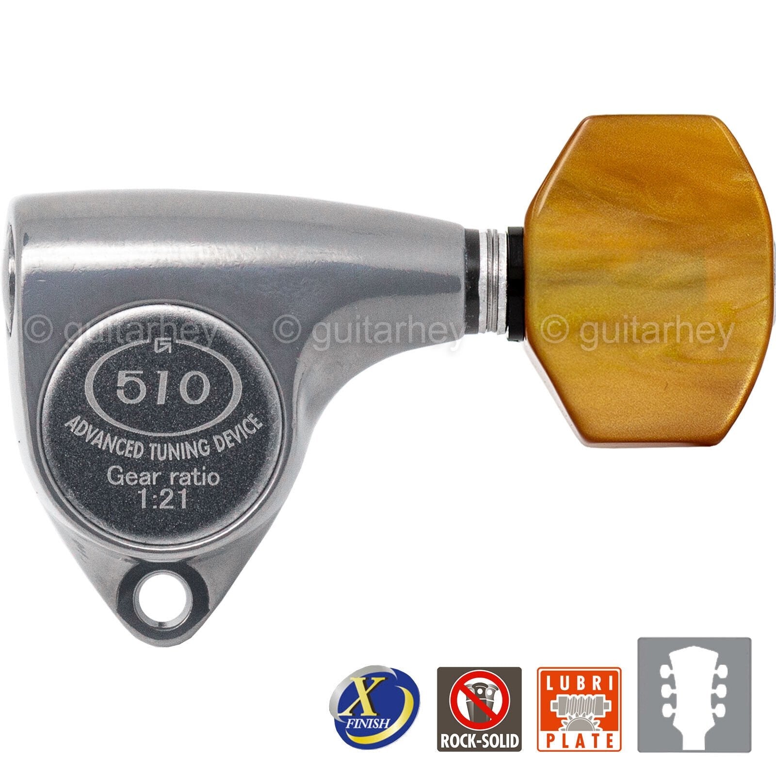 NEW Gotoh SGV510Z-P8 Tuners L3+R3 Keys 1:21 Ratio, AMBER 3x3 - X-FINISH CHROME
