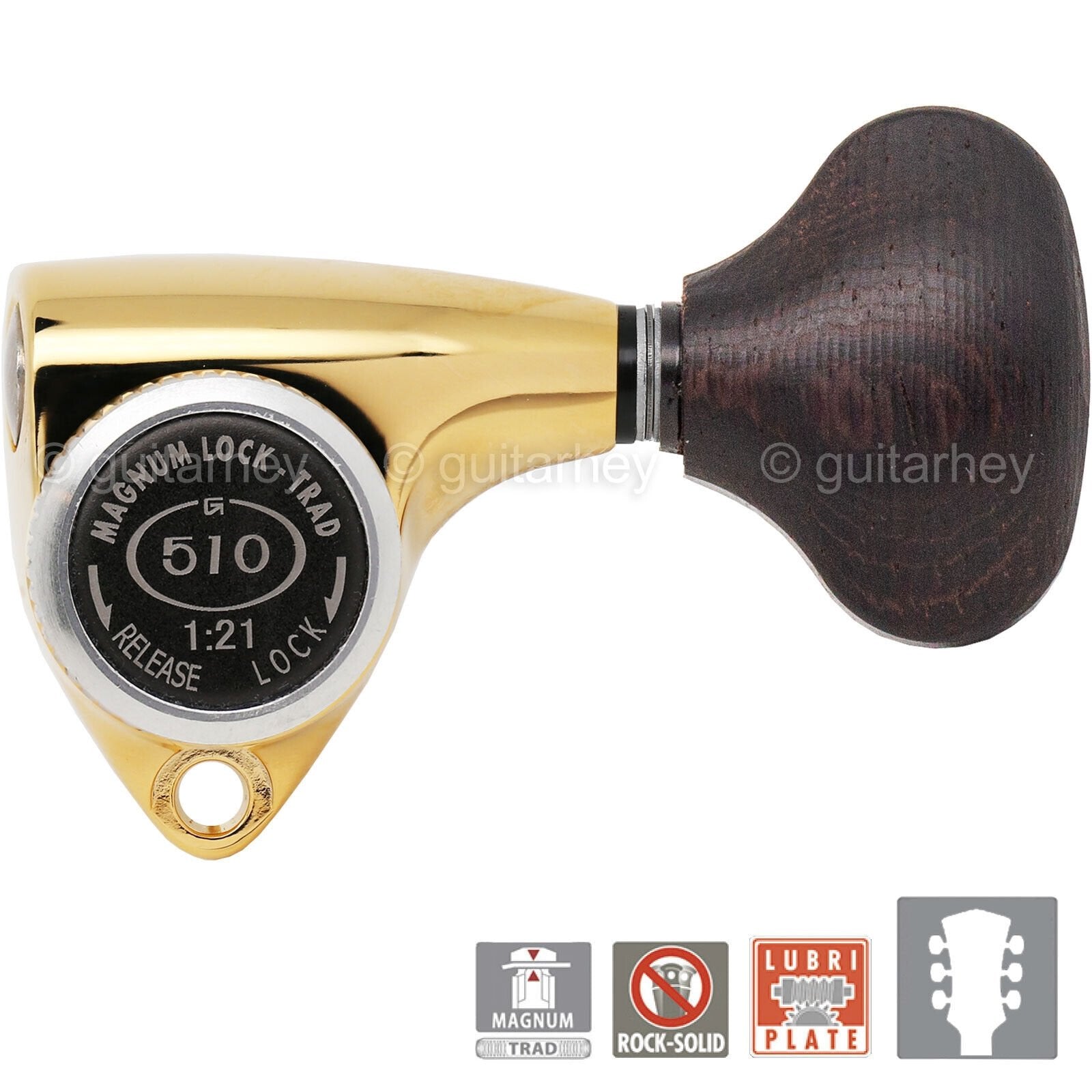 Gotoh 510 top of the line super tuning machine heads feature the accuracy and reliability Gotoh is famous for. They features a 21:1 gear ratio for precise, accurate tuning in a small footprint, and a die-cast enclosure that is permanently sealed and lubricated for years of smooth operation.