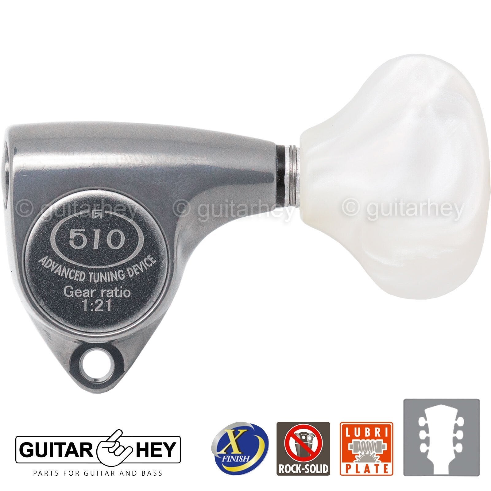 Gotoh 510 top of the line super tuning machine heads feature the accuracy and reliability Gotoh is famous for. They features a 21:1 gear ratio for precise, accurate tuning in a small footprint, and a die-cast enclosure that is permanently sealed and lubricated for years of smooth operation.