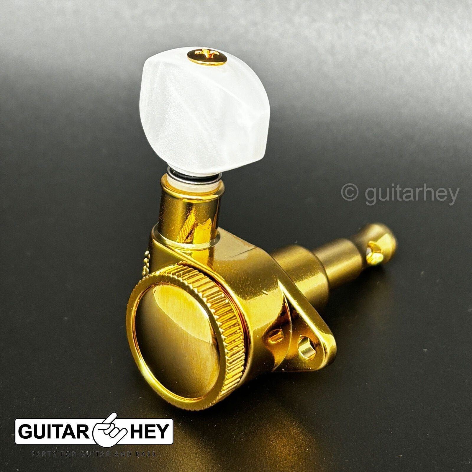 NEW Grover 502 LOCKING Tuners 3x3 Modern Gibson Les Paul SMALL PEARL Button GOLD