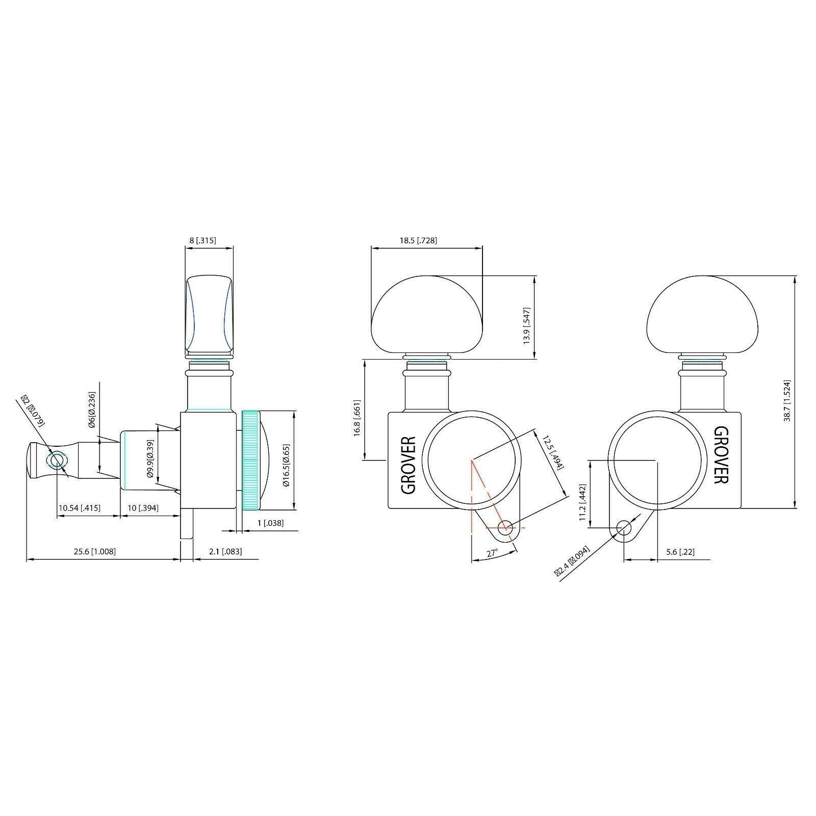 Mounting screws and threaded hex peghead bushings with washers are included.