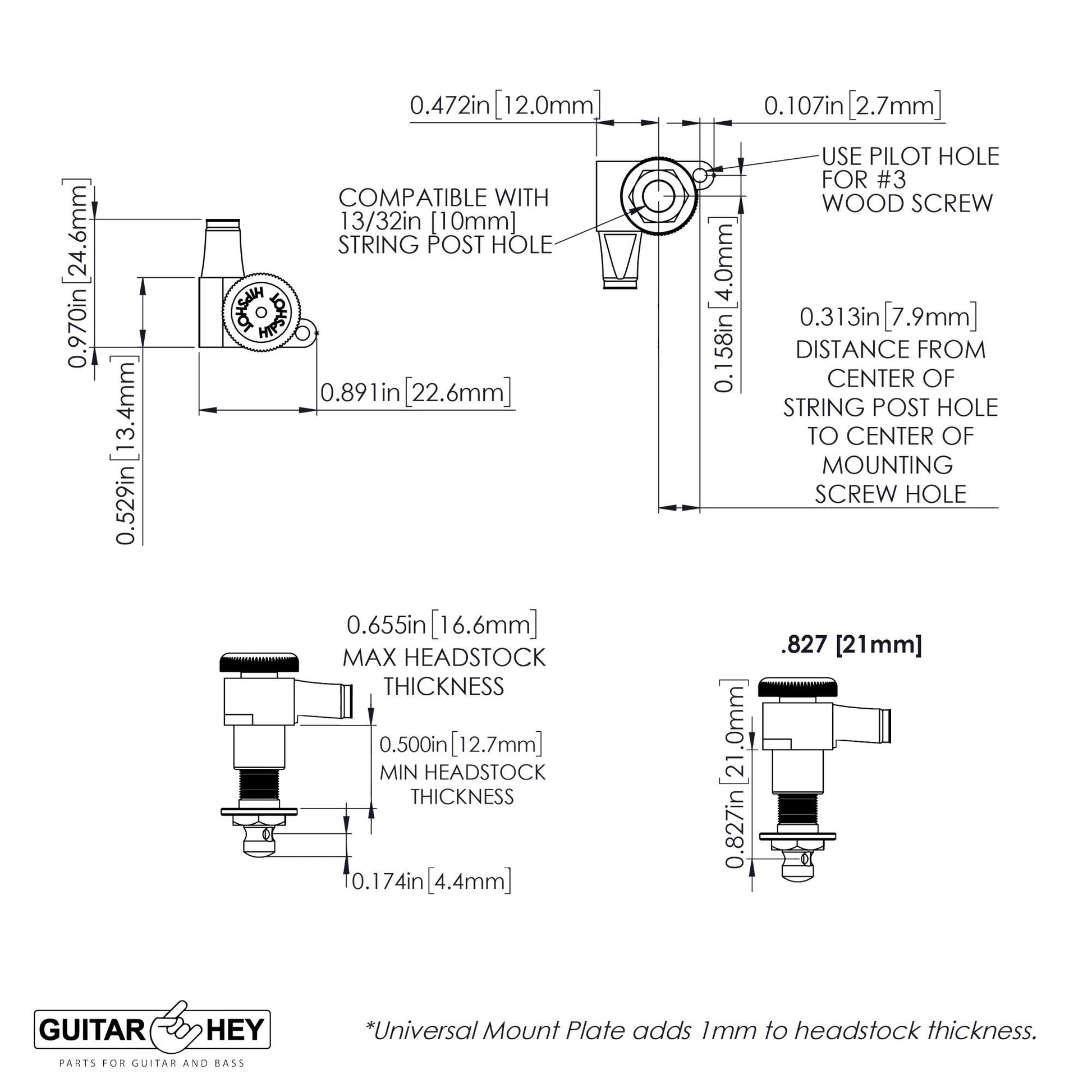 - Included UMP (Universal Mount Plate) for 6 Inline headstocks. No drilling or special tools required