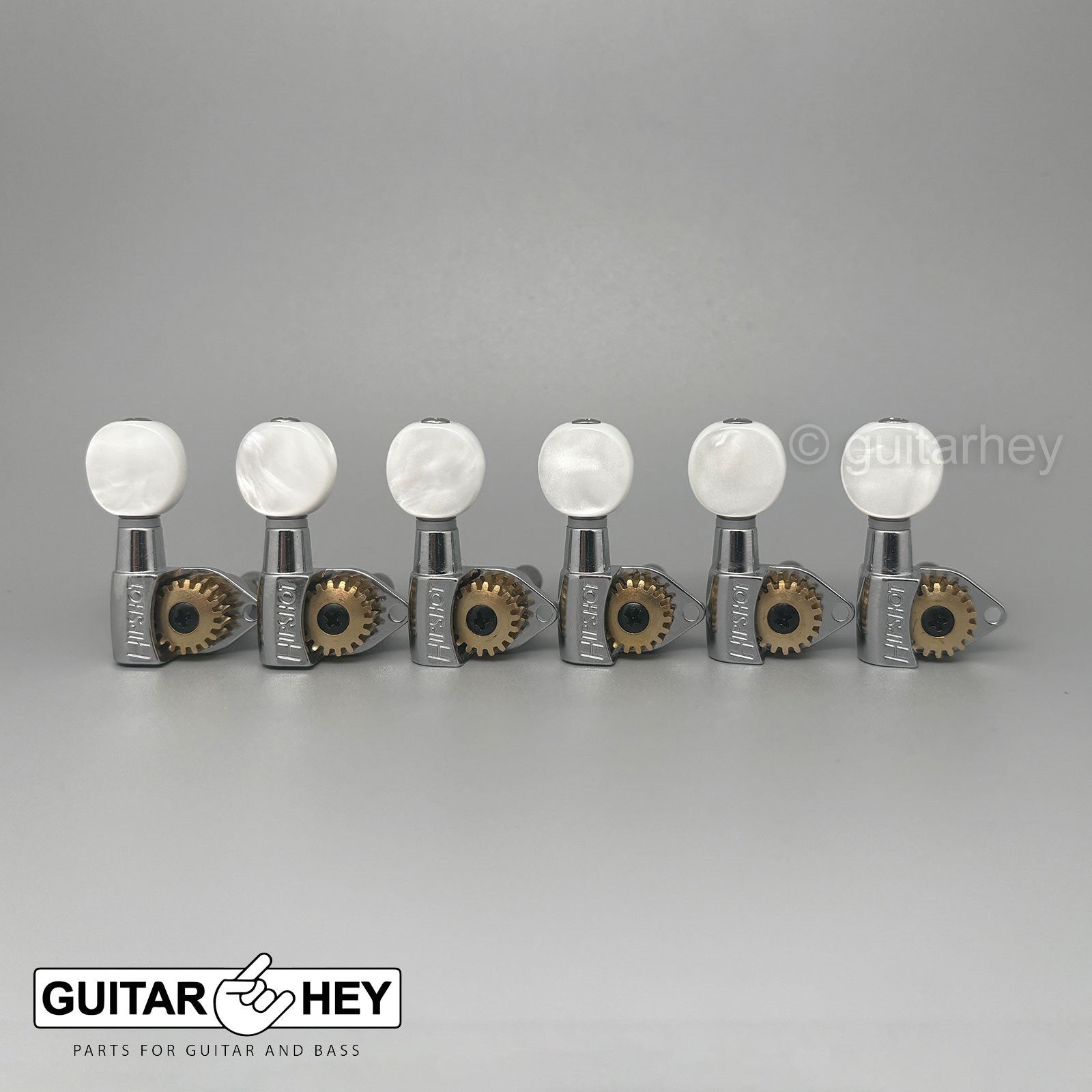 NEW Hipshot 6 in Line STAGGERED Classic OVAL PEARLOID Buttons w/ Plates - CHROME