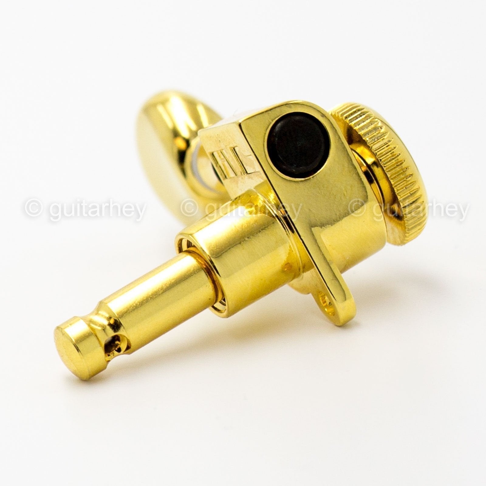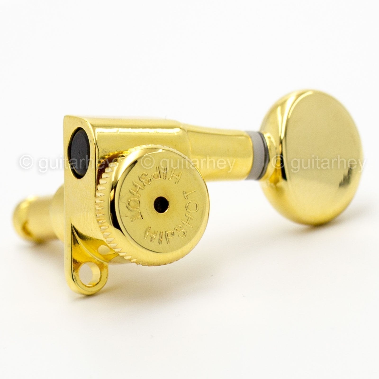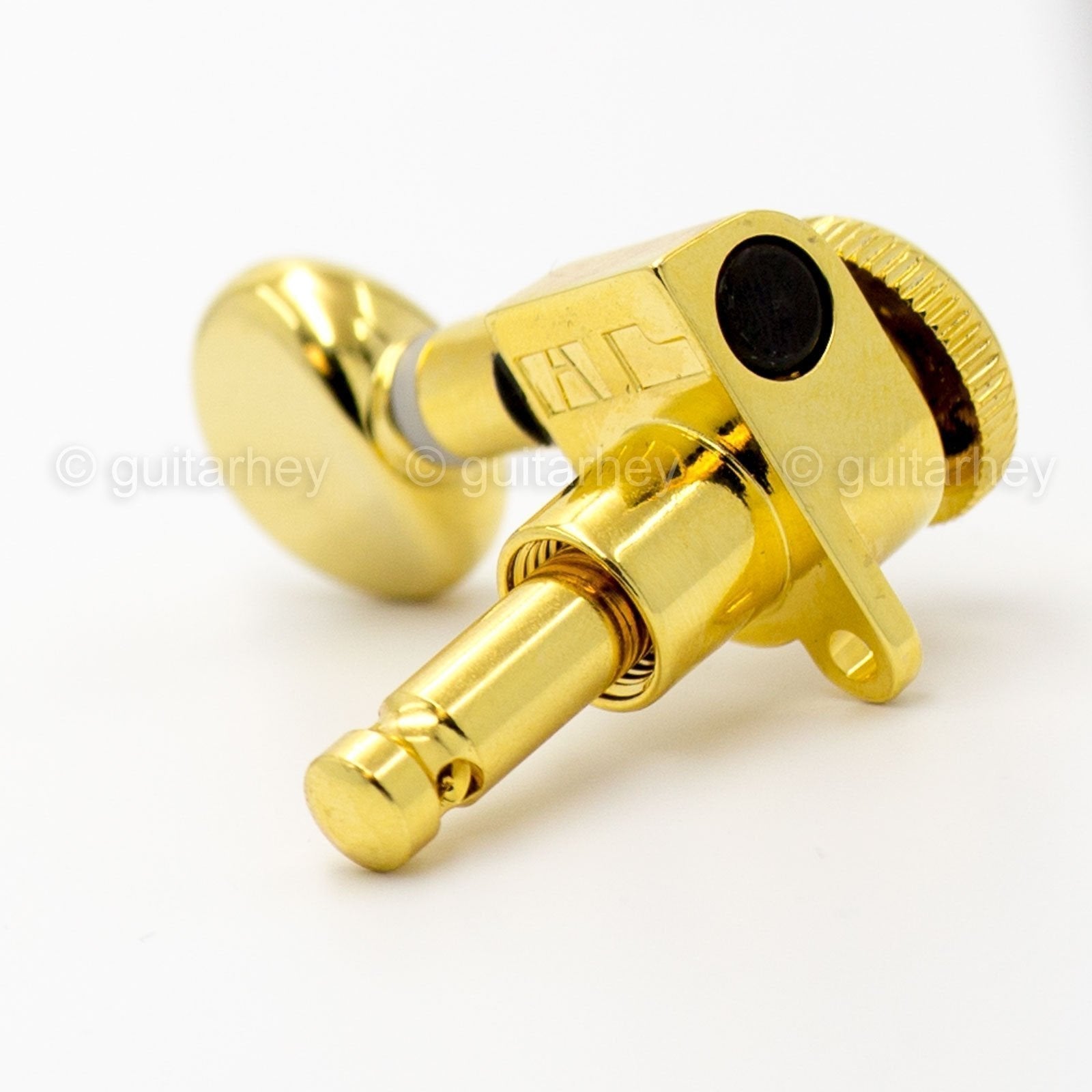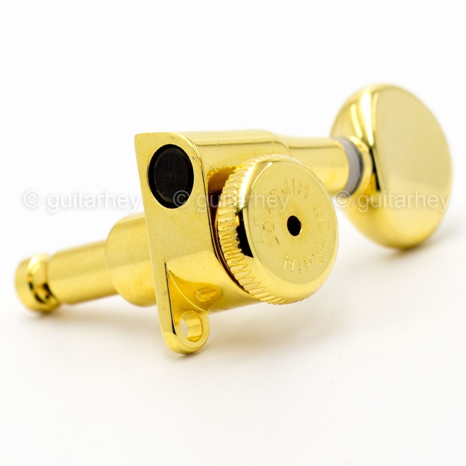 NEW Hipshot 6-In-Line STAGGERED Grip-Lock Locking Mini Tuners D05 Keys - GOLD