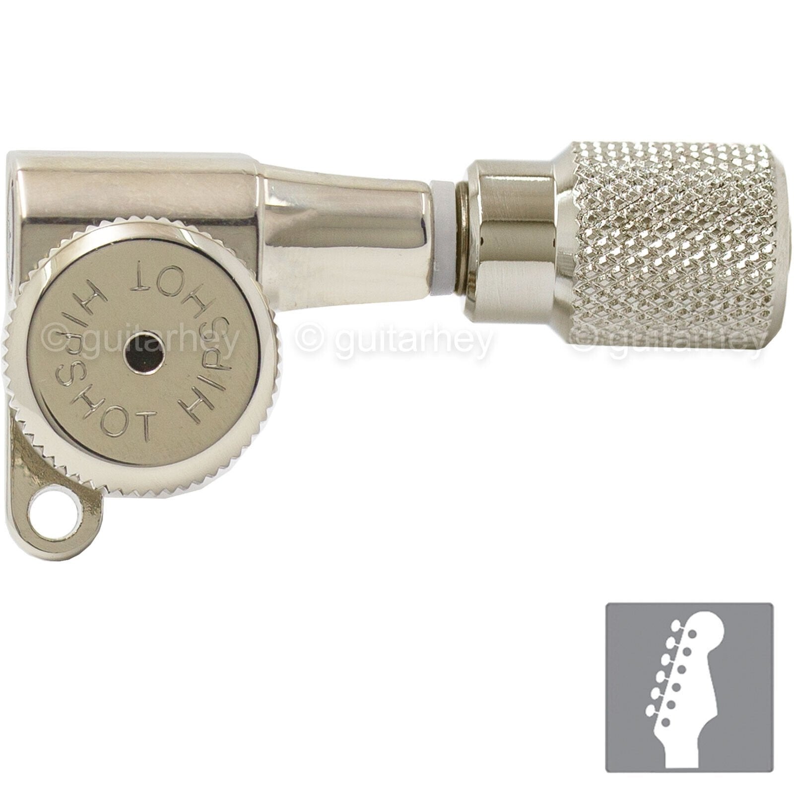 NEW Hipshot 6-in-Line STAGGERED Locking Tuners SET w/ Knurled Buttons - NICKEL