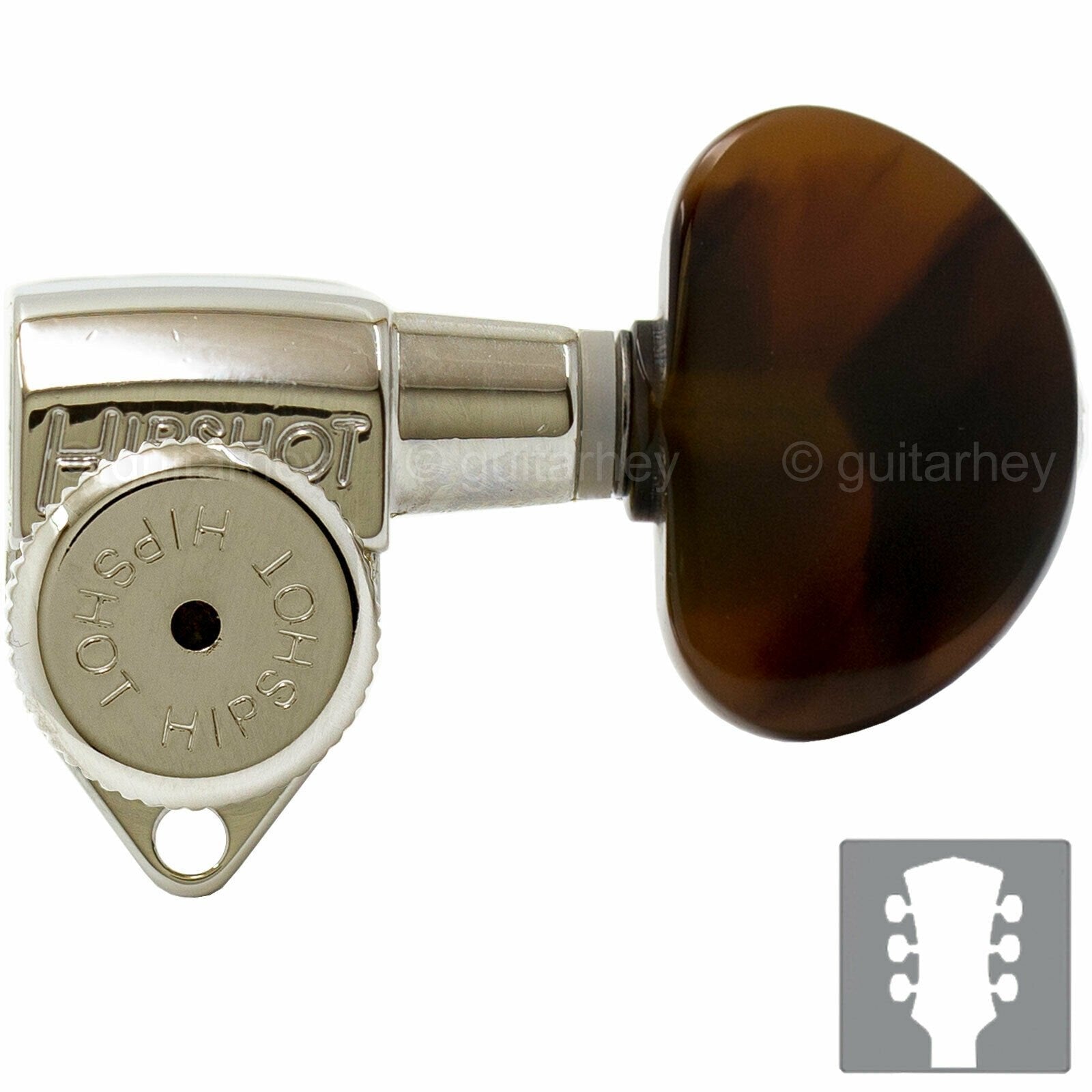 NEW Hipshot Grip-Lock Open-Gear LOCKING Tuners LARGE TORTOISE Buttons 3x3 NICKEL
