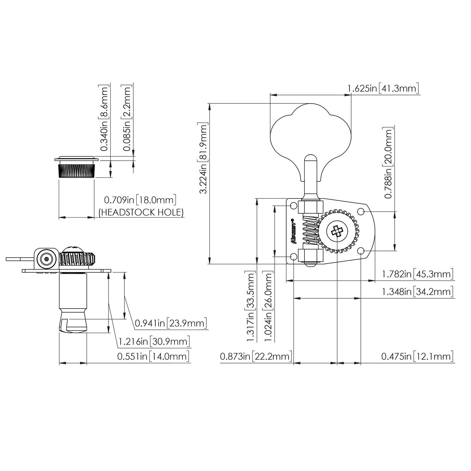 Retire those worn out stock tuners and slap on a set of Hipshot American Classics! The HB7 is a direct replacement for Fender® Highway One tuning machines first featured on many MIM models. It is now a popular choice for many contemporary Fender® basses including Vintage Modified Squire®, USA and Custom Shop models. Many smaller, independent builders have adopted this machine as well.