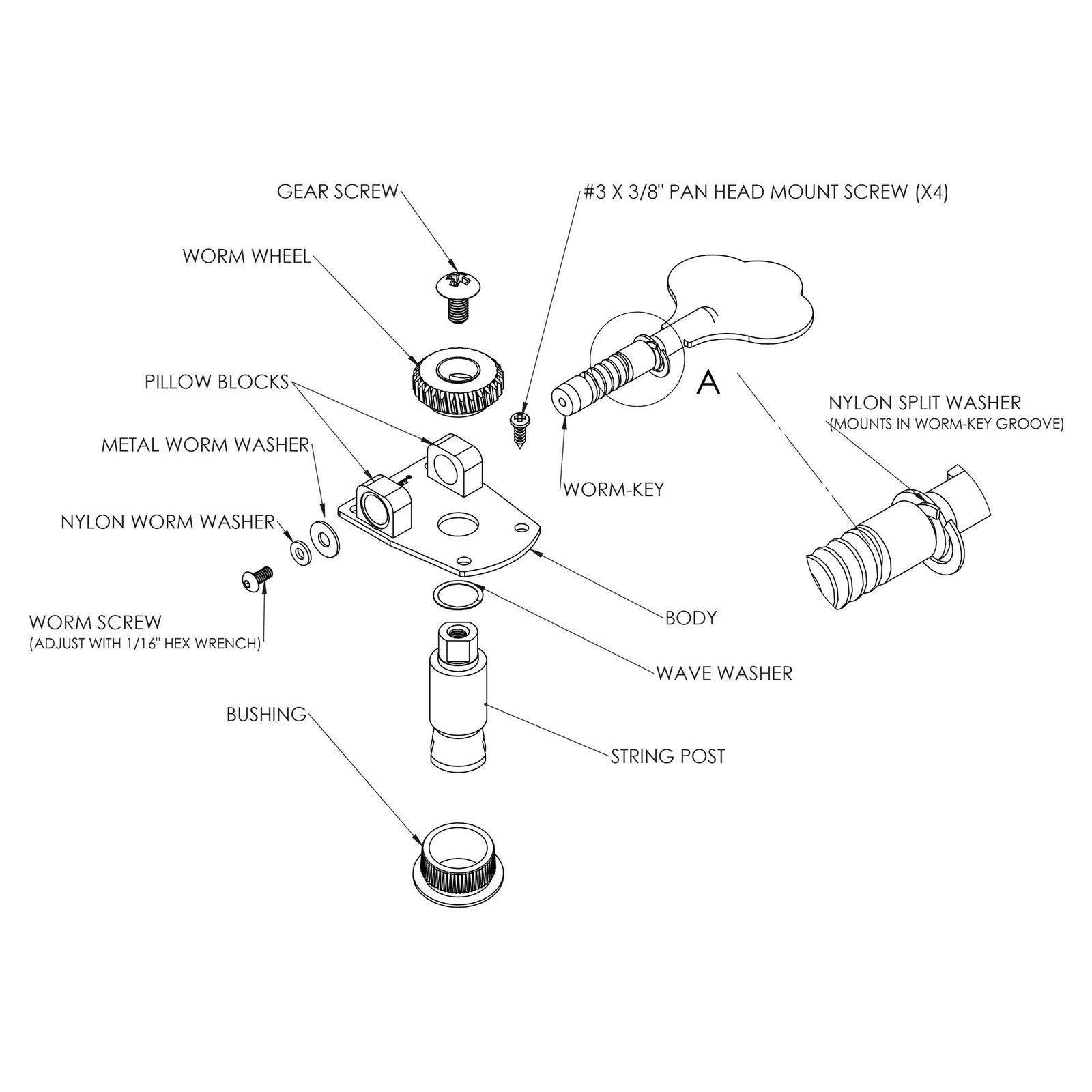 - 11/16" [18mm] string post hole required