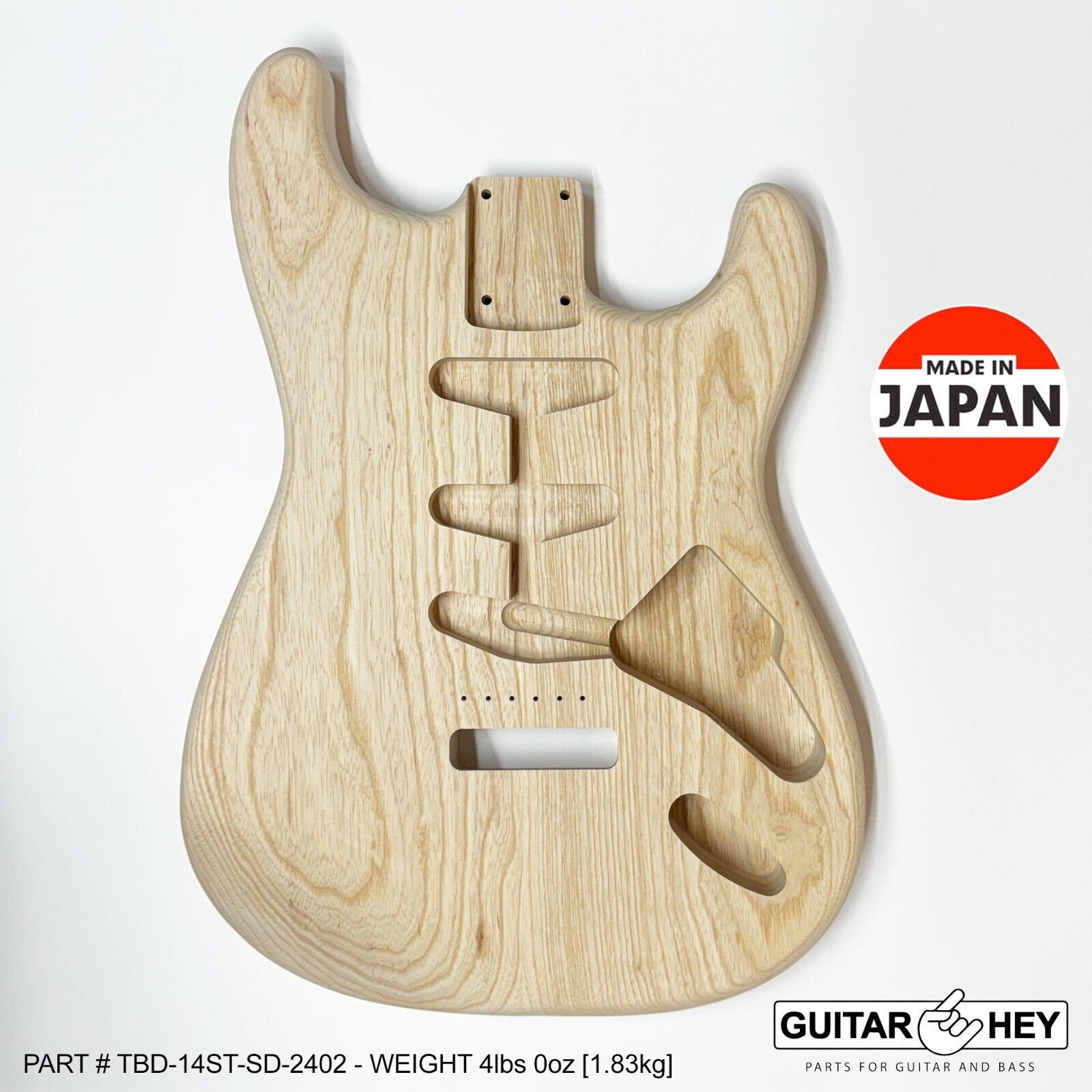 - Replacement Strat® body, made in Japan from North American two-piece Swamp Ash with a center join.